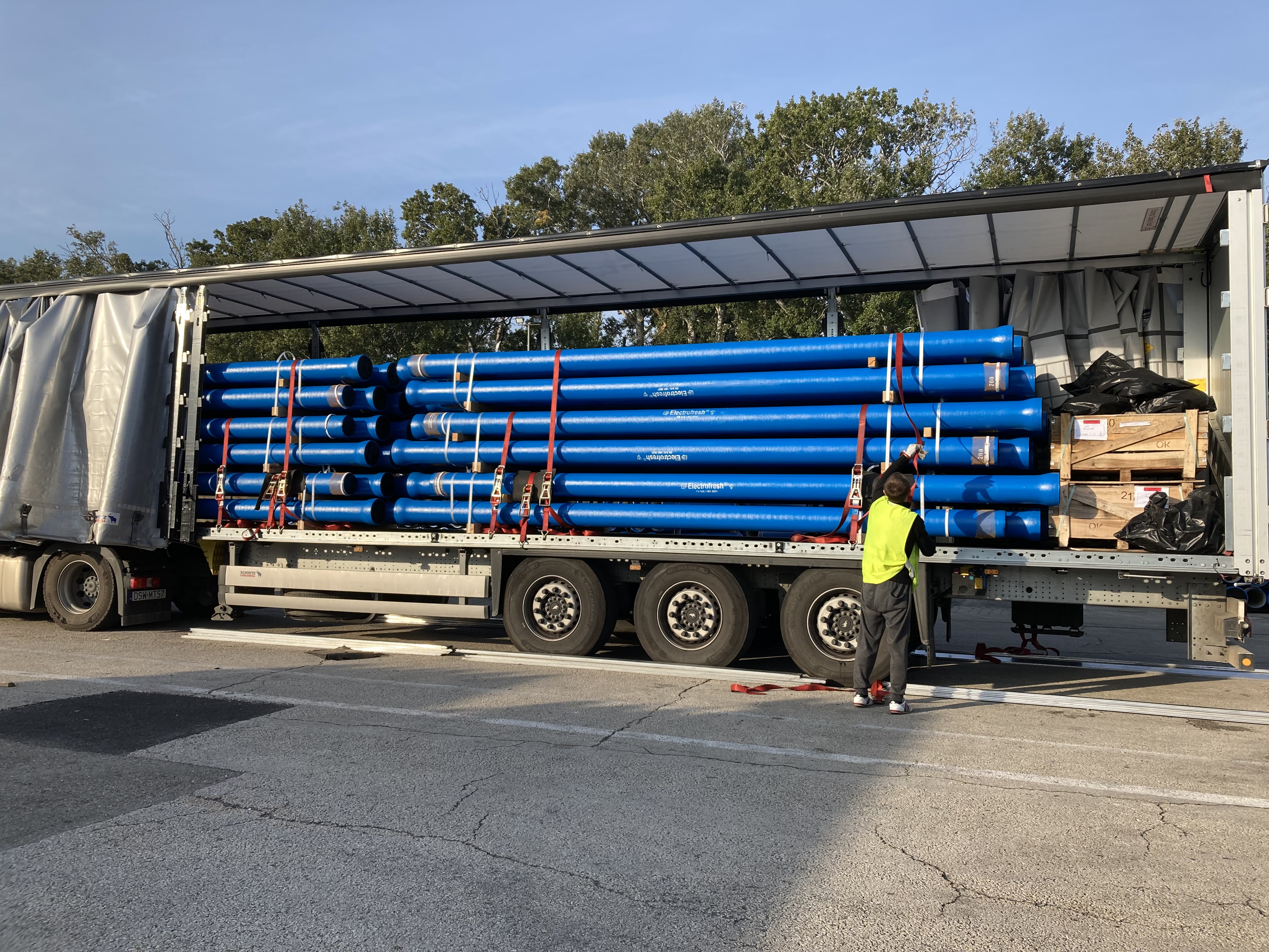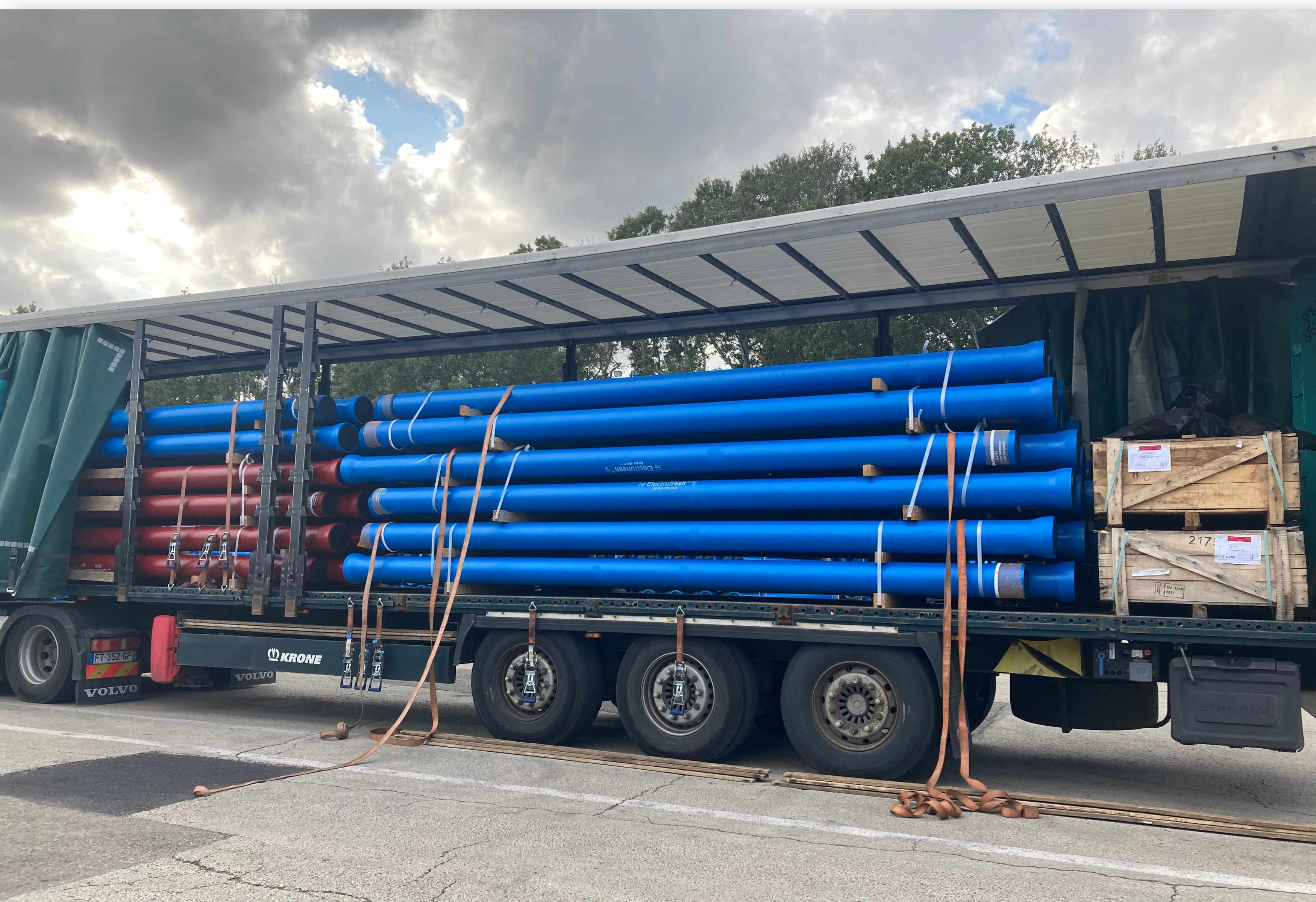 Camion tuyaux bleus